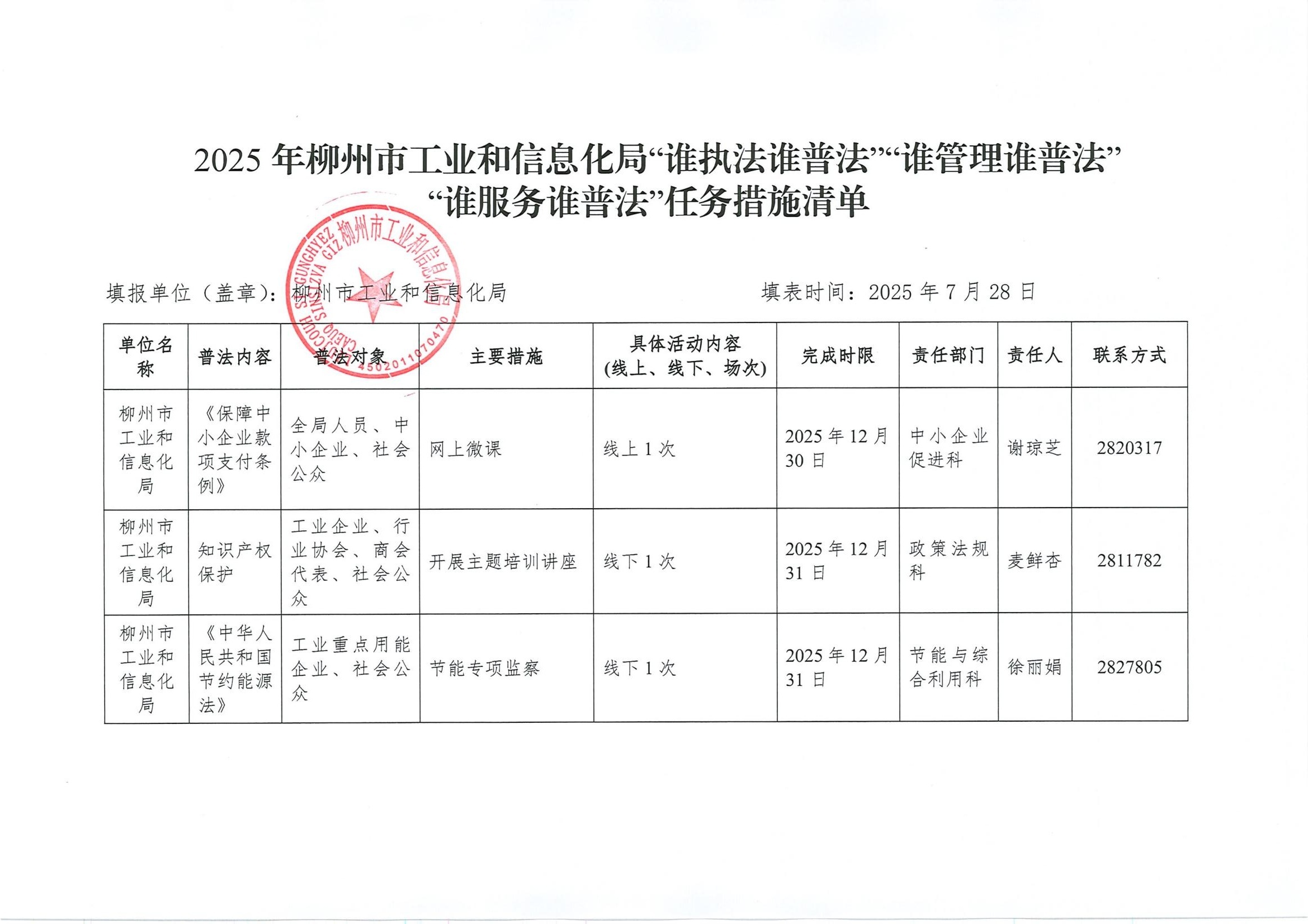 2025年柳州市工业和信息化局“谁执法谁普法”“谁管理谁普法”“谁服务谁普法”任务措施清单