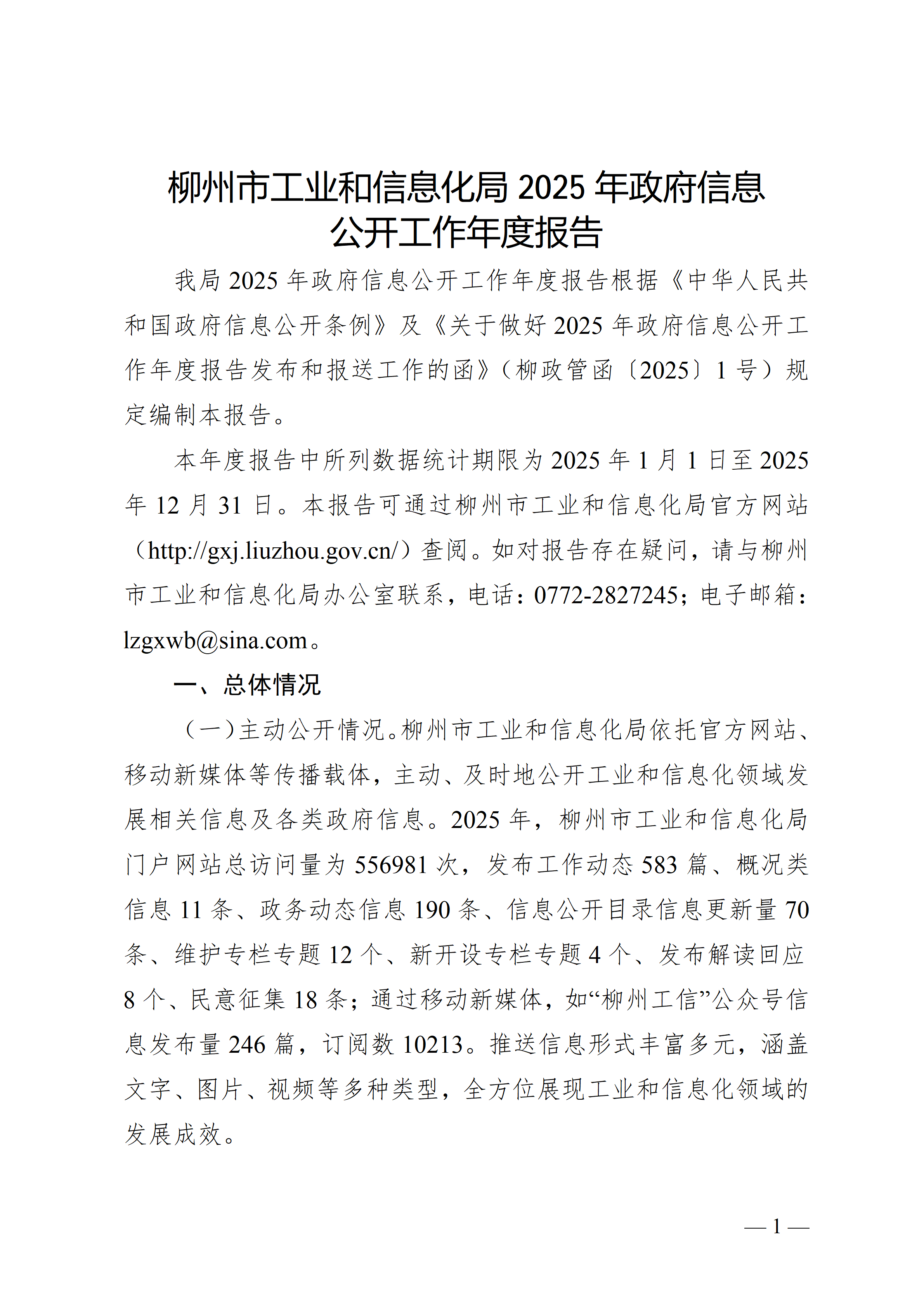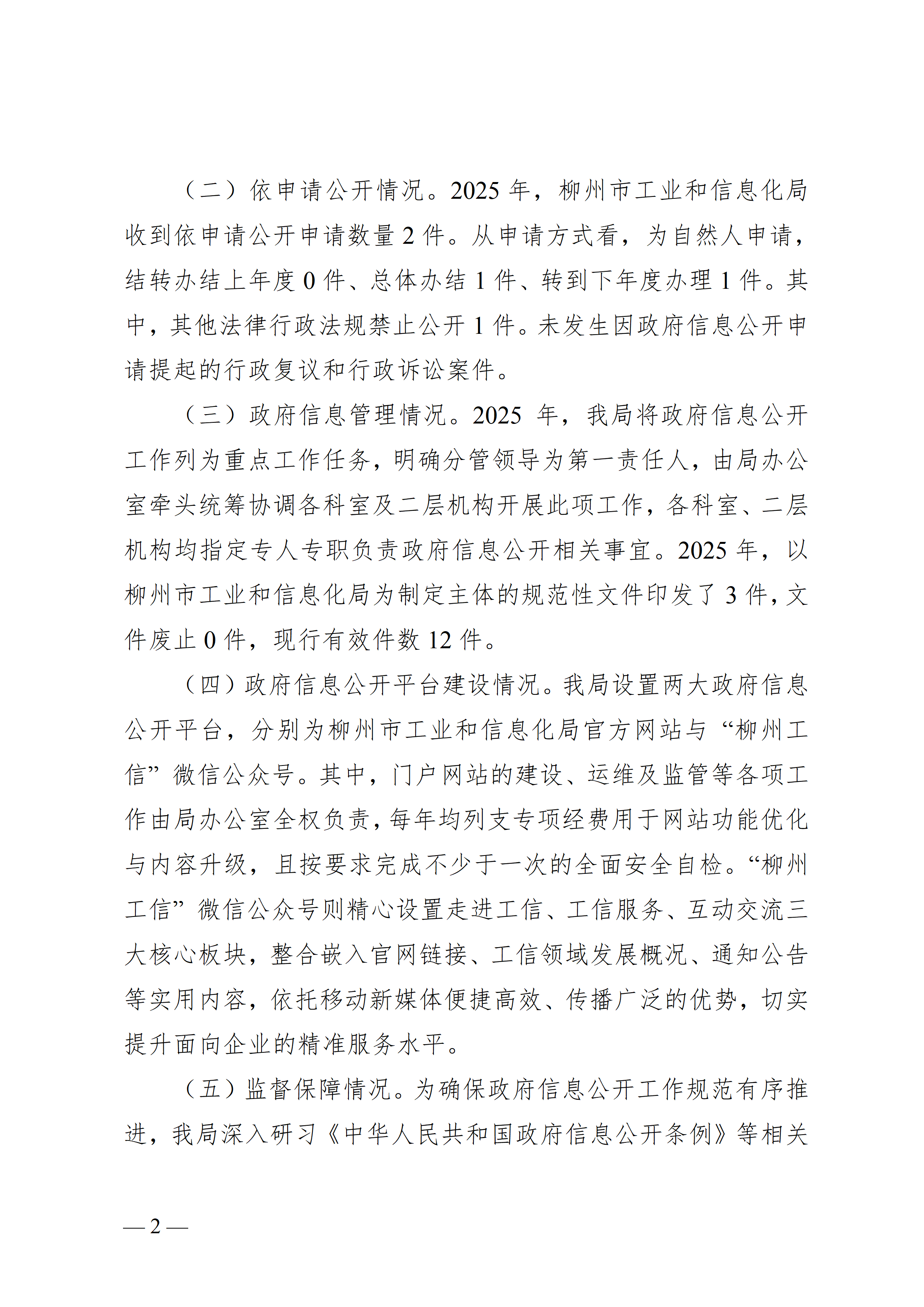 柳州市工业和信息化局2025年政府信息公开工作年度报告